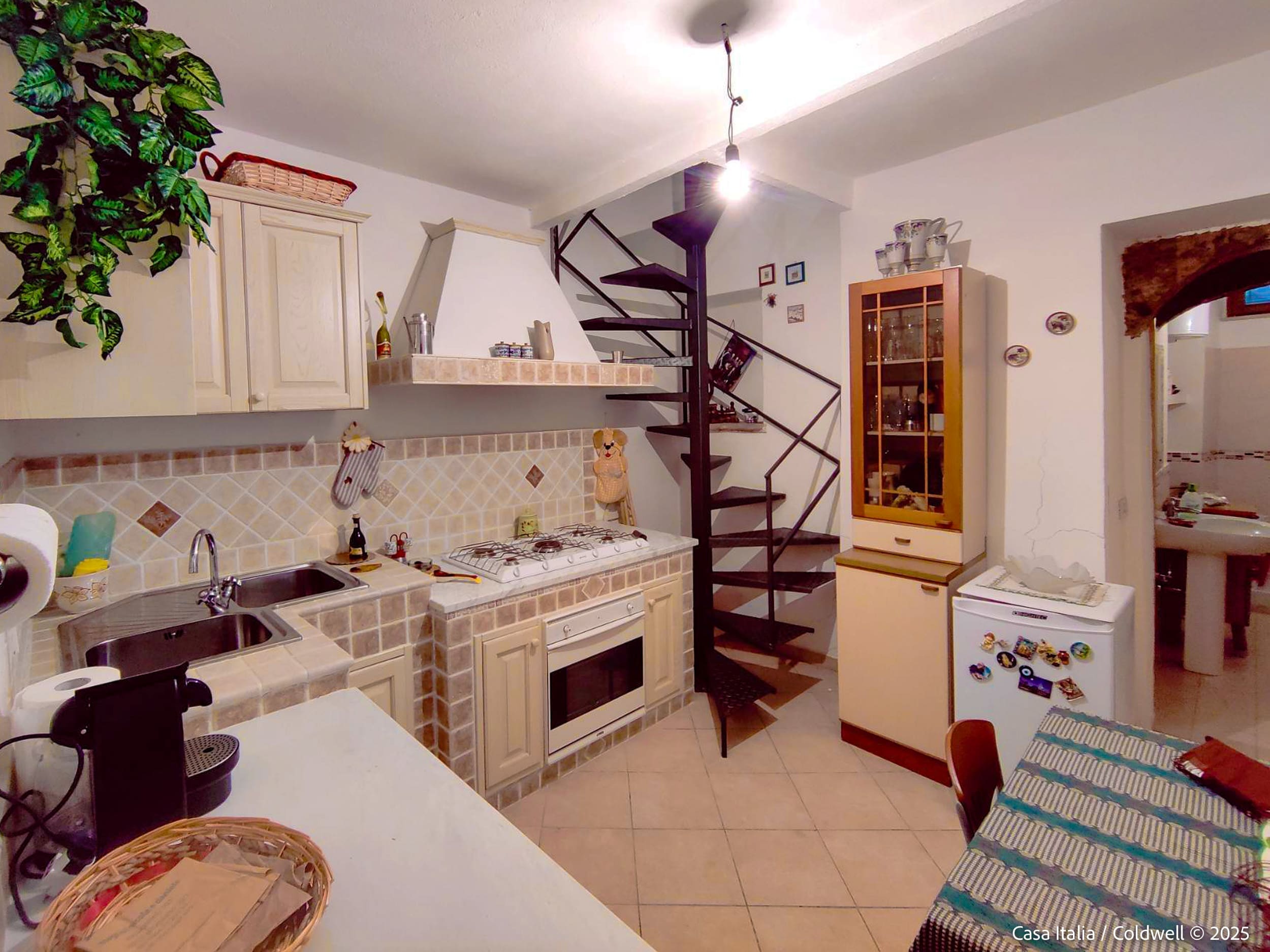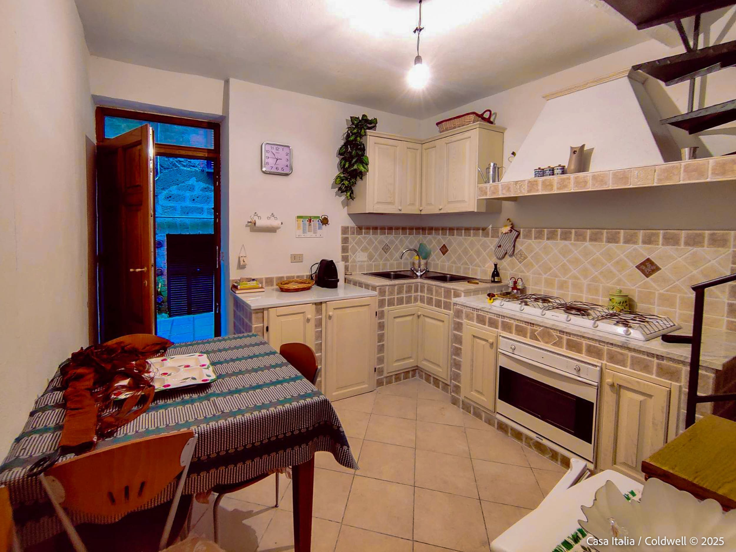 Leiligheten ligger i første og andre etasje i et bygg fra 1700-tallet. Mange av de opprinnelige byggedetaljene er bevart og gir hjemmet en varm og autentisk karakter: Synlige trebjelker, murte kjøkkenflater og teglbuer som er typiske for landsbyene i Alto Lazio.