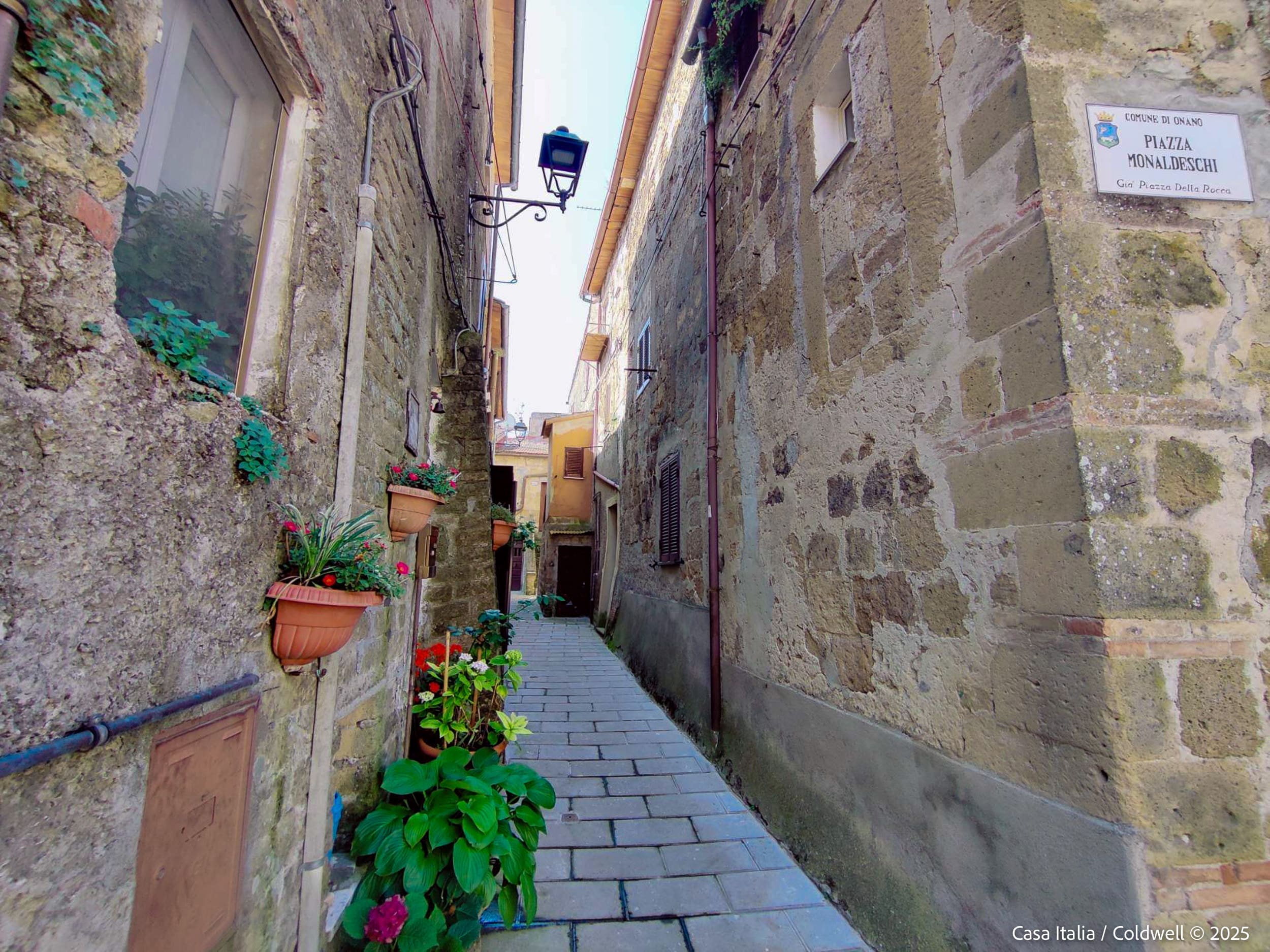 Denne intime leiligheten ligger i Onanos historiske sentrum, omgitt av steinmurer, små piazzaer og utsyn mot Volsinifjellene. Med bjelker, murbuer, ildsted og to innganger fordelt på to plan, får du et ekte landsbyhjem. Her bor du nær torg, kafeer og lokale spesialiteter – og med kort vei til Bolsenasjøen, naturparker og tufabyene i grenselandet mot Toscana.