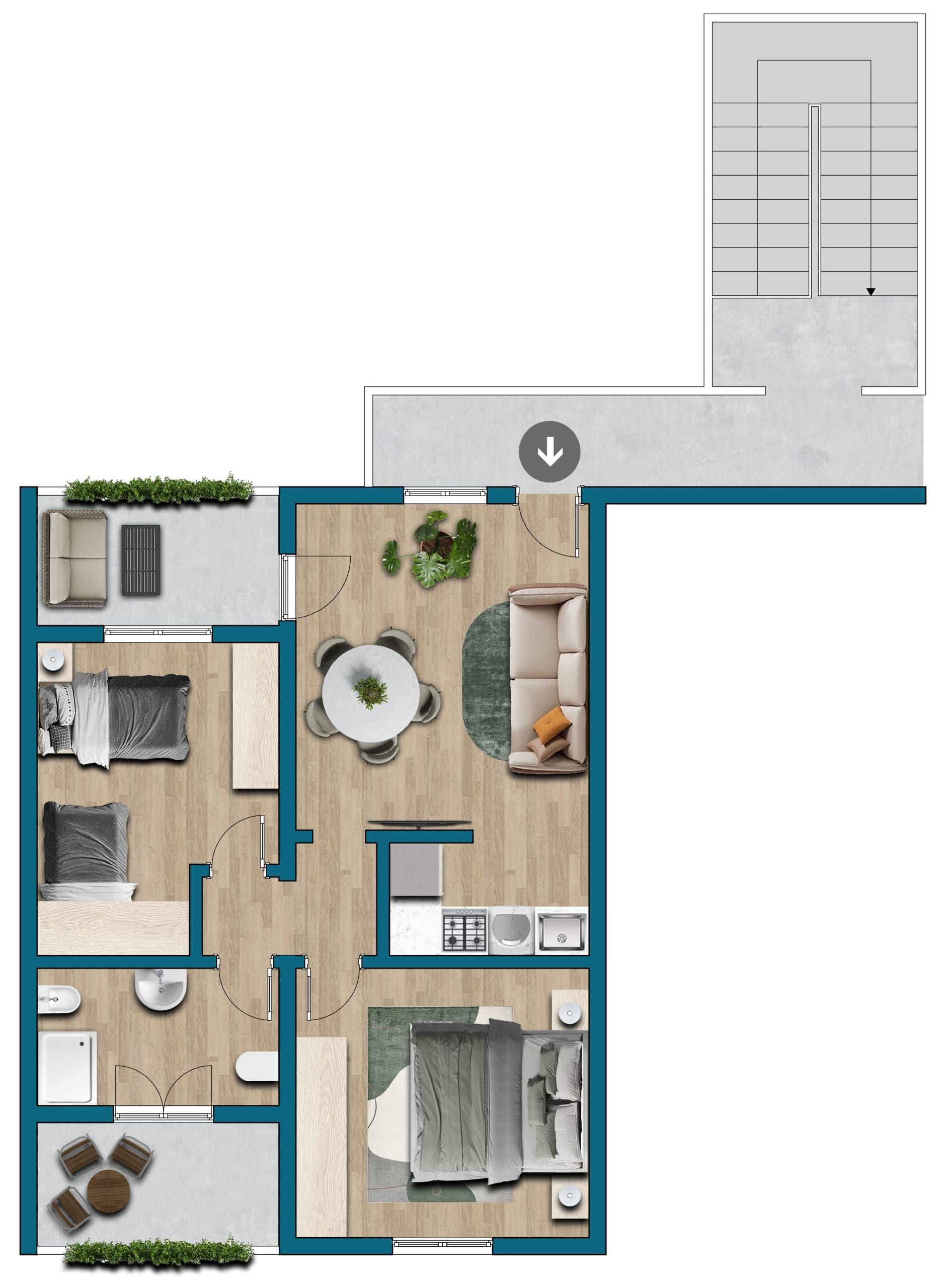 - Øverste etasje: sikrer ekstra privatliv og lys