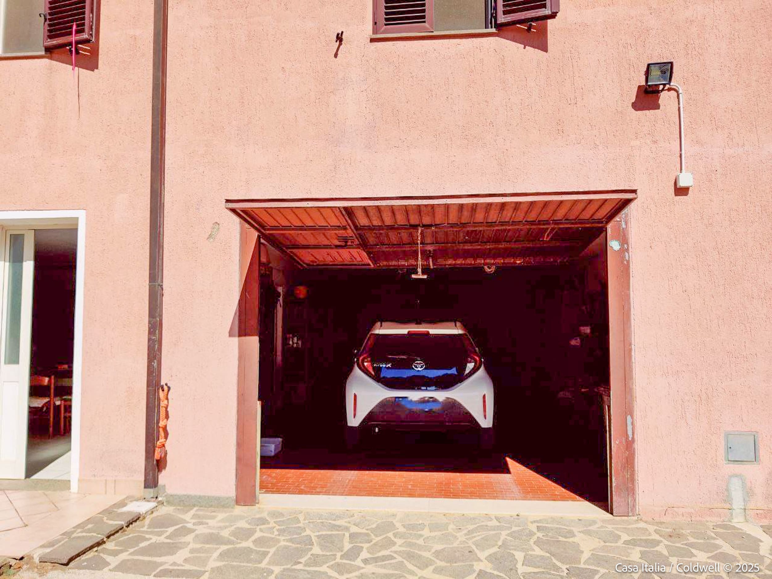 1. etasje (135 m²): Verksted, stor kjøkken, olivenoljepresse, vinkjeller/lager og dobbelgarasje.